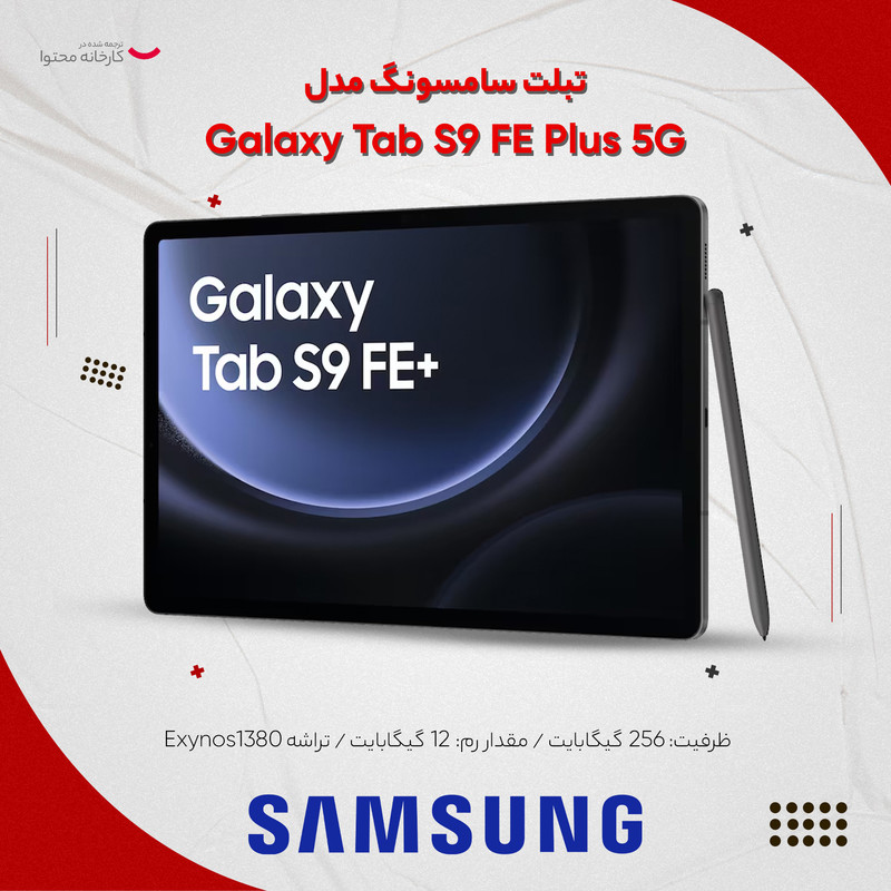 تبلت سامسونگ مدل Galaxy Tab S9 FE Plus 5G SM-X616B ظرفیت 256 گیگابایت و رم 12 گیگابایت به همراه قلم