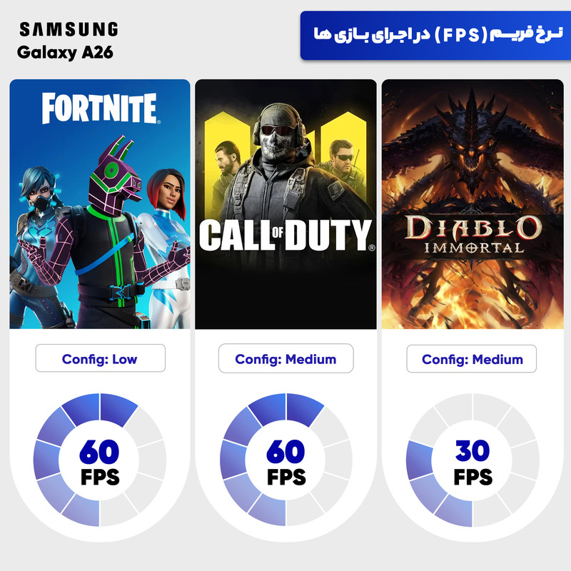 گوشی Samsung Galaxy A26 یکی از جدیدترین اقتصادیهای سامسونگ است که این در قالب یک میانرده به بازار آمده و طراحی زیبا، نمایشگر قدرتمند و پشتیبانی نرمافزاری بلندمدت، انتخابی ایدهآل برای کاربرانی است که خواهان کیفیت و عمر طولانی در گوشی موبایل خود هستند. این گوشی با بدنهای شیشهای از جنس Gorilla Glass Victus+ در جلو و پشت و بهرهمندی از گواهیIP67 در برابر آب و گرد و غبار نفوذ ناپذیر است و حس یک دستگاه میانرده یا حتی پرچمدار را به شما میدهد. نمایشگر ۶.۷ اینچی Super AMOLED با رزولوشن FHD+ و نرخ نوسازی ۱۲۰ هرتزی، تجربهای لذتبخش و چشمنواز را در هنگام تماشای ویدیو و کارهای روزمره برای شما فراهم میکند. در بخش پردازنده،Galaxy A26 به چیپست Exynos 1380 مجهز شده است که برای اجرای نرمافزارها، شبکههای اجتماعی و حتی برخی بازیها عملکرد مناسبی دارد. دوربین اصلی سهگانه این گوشی شامل یک سنسور ۵۰ مگاپیکسلی با لرزشگیر اپتیکال، دوربین فوقعریض ۸ مگاپیکسلی و دوربین ماکرو ۲ مگاپیکسلی است. دوربین سلفی ۱۳ مگاپیکسلی هم کیفیت خوبی برای تماسهای ویدیویی و عکاسی روزمره دارد. منبع تغذیه این گوشی باتری ۵۰۰۰ میلیآمپرساعتی است که از شارژ سریع ۲۵ وات پشتیبانی میکند و استفادهی طولانیمدت از گوشی را تضمین میکند. سامسونگ این گوشی را با اندروید ۱۵ عرضه کرده و وعده ۶ سال آپدیت اندروید را داده است؛ امکانی که در این بازه قیمتی تقریباً بیرقیب است و به طور کلی Galaxy A26 یک انتخاب مطمئن برای کسانیست که به دنبال تعادل بین عملکرد، دوام و ارزش خرید هستند.